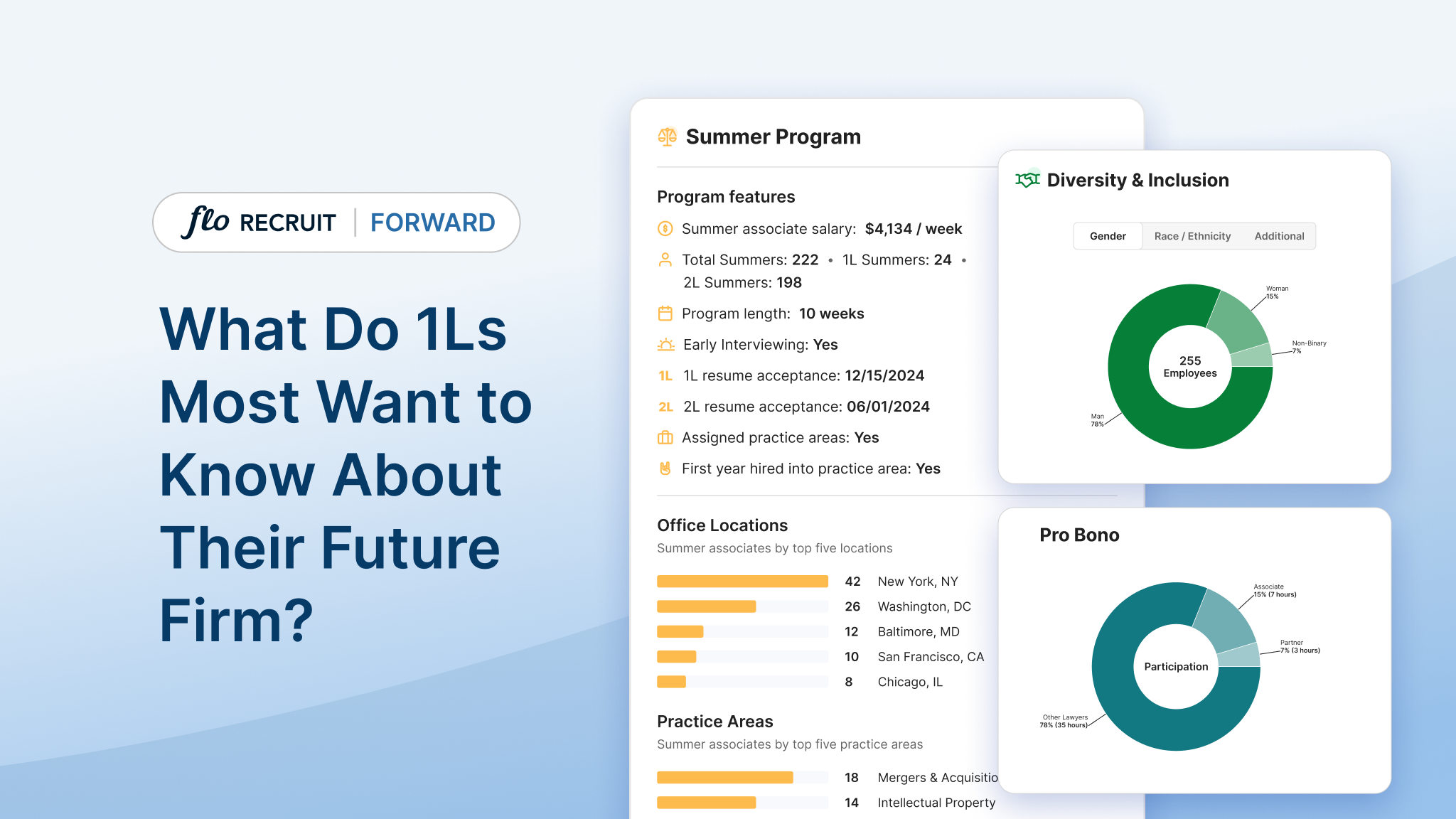As trusted partners, many of you heard about Flo Recruit Forward in 2023 when we started building. And, many of you already joined: 10 early Forward School Partners, 50+ Firm Profile adopters, and 10,000+ law students